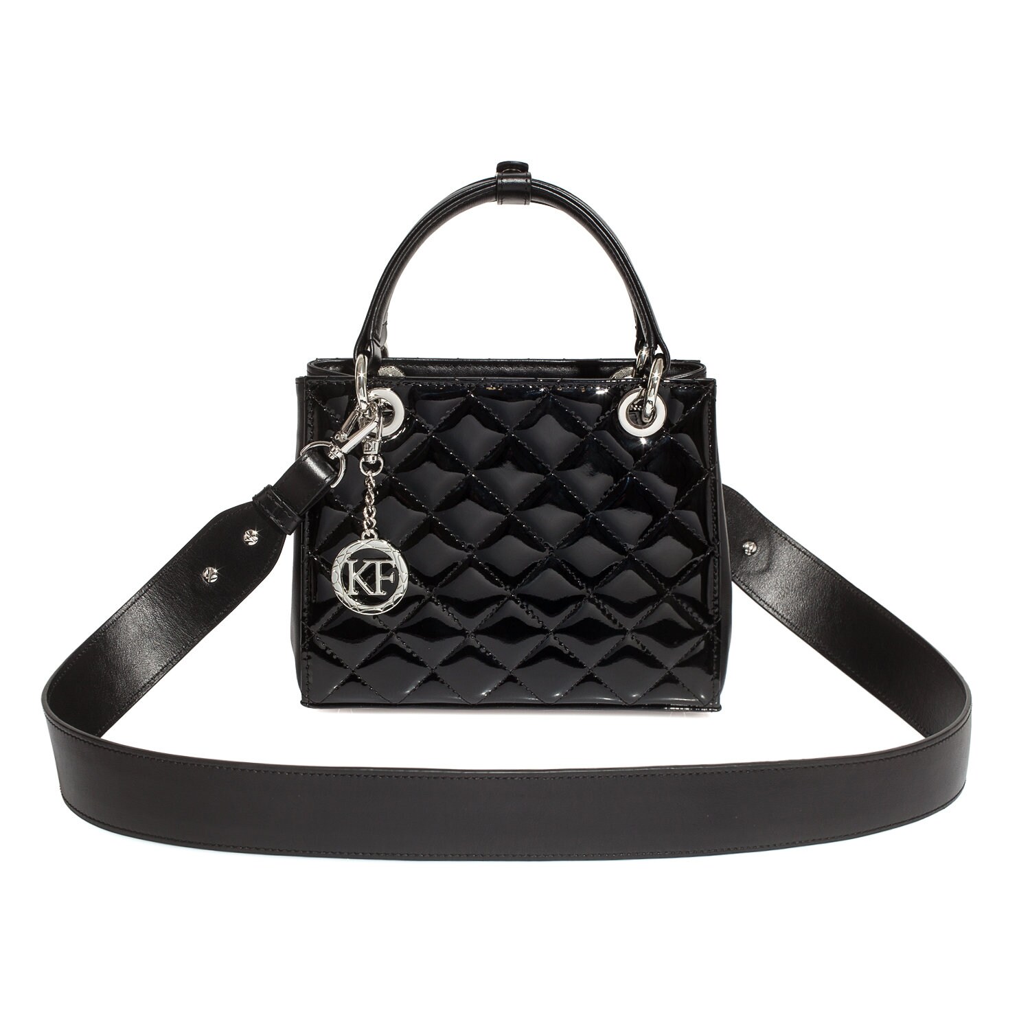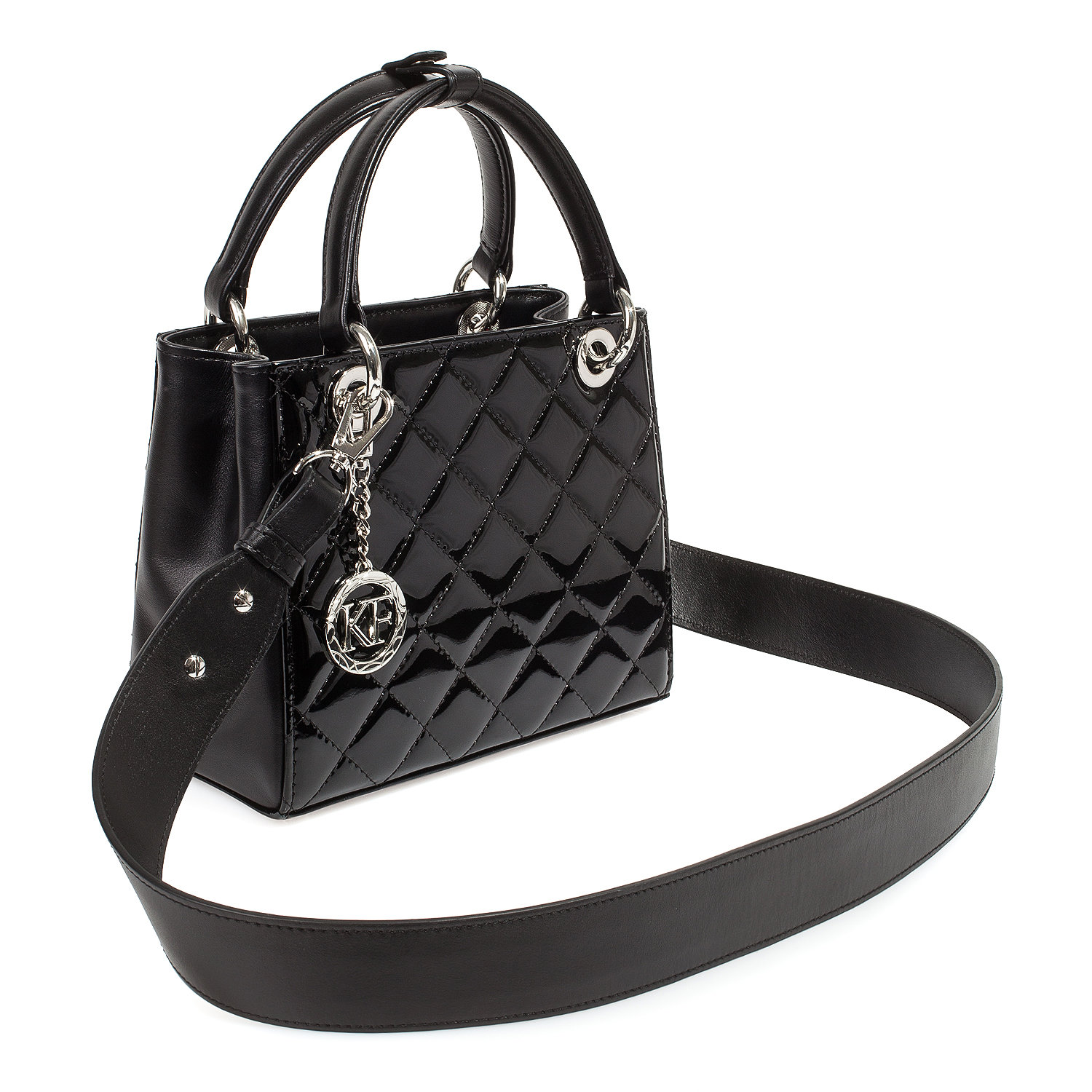 Leather Top Handle Bag, Black Patent Leather Handbag Top Handle, Women's Leather Bag KF-4486
