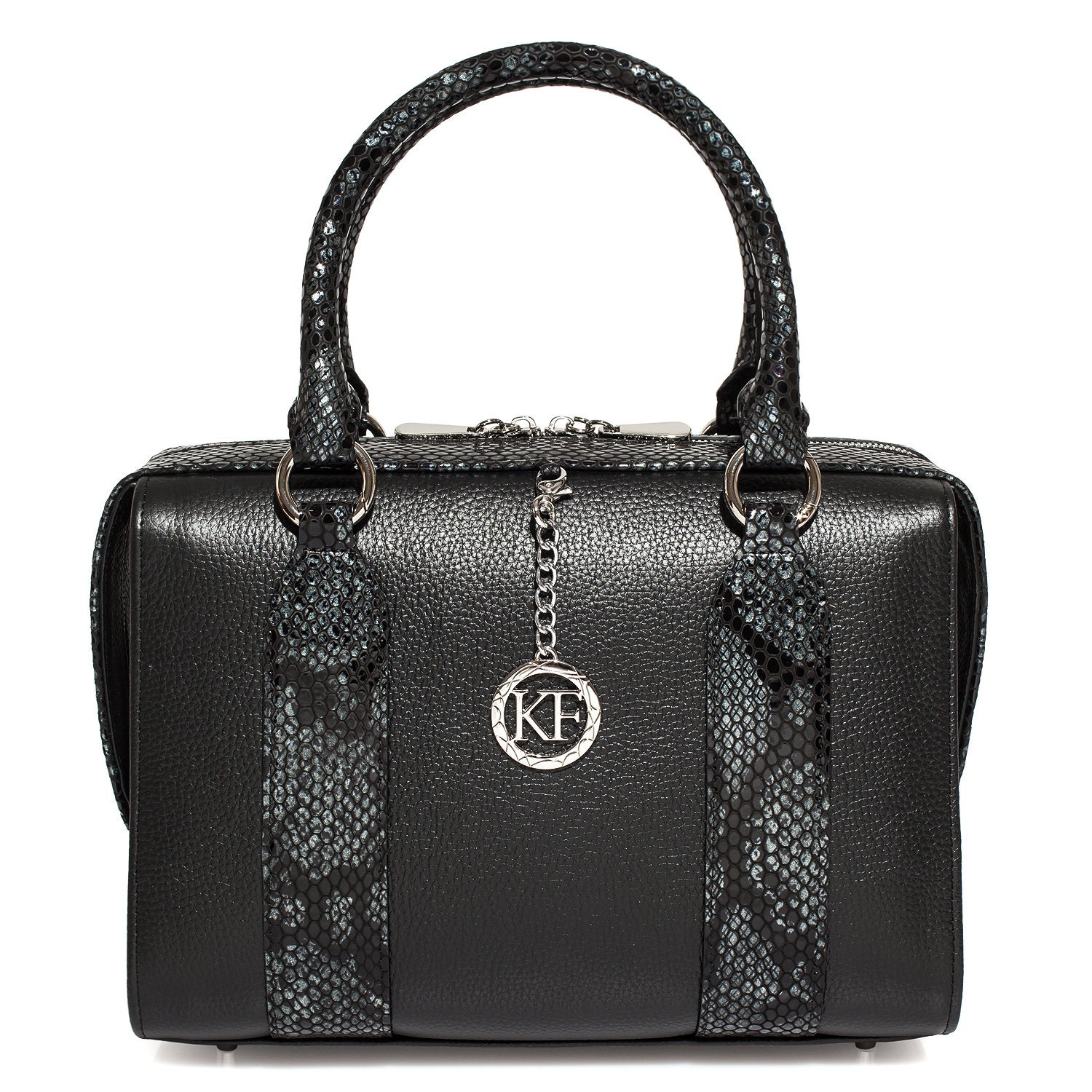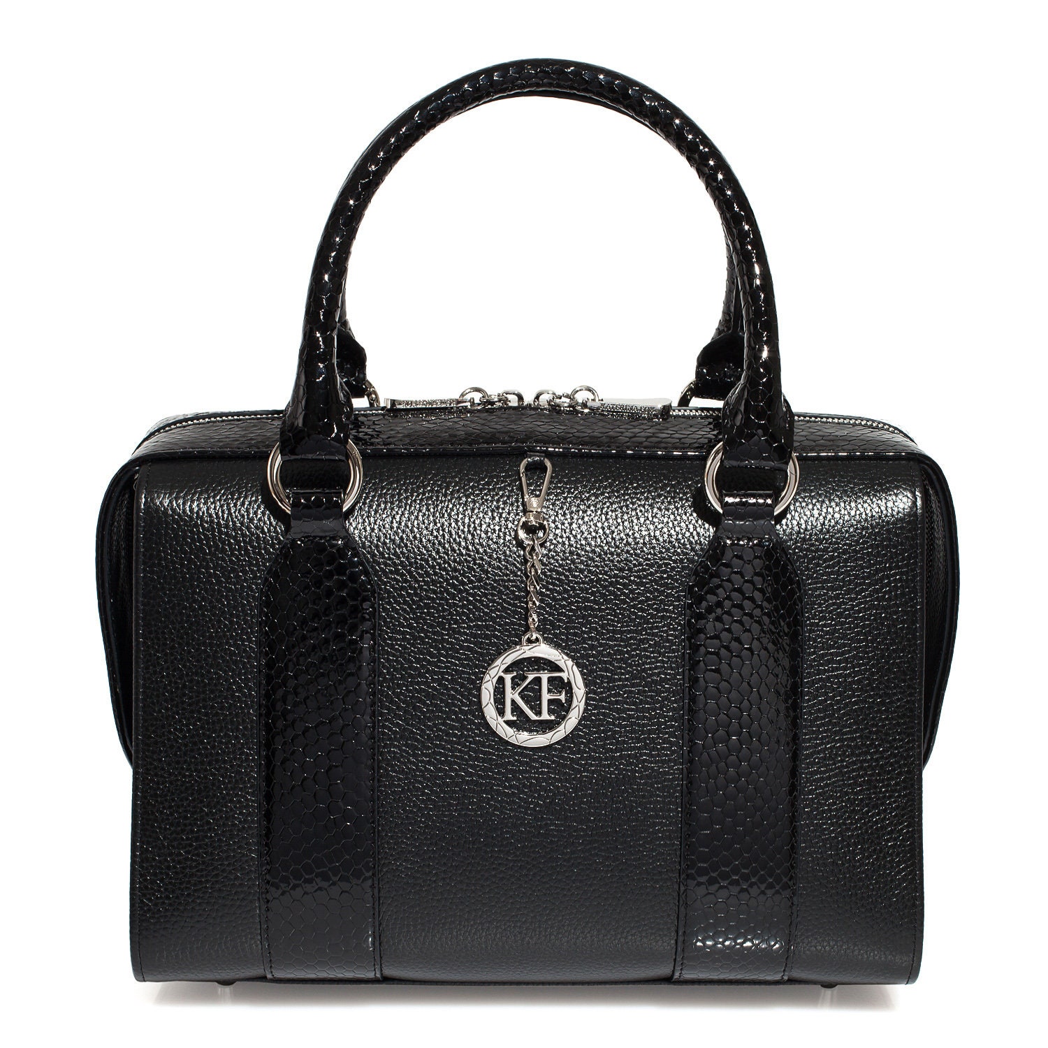 Leather Top Handle Bag, Black Leather Handbag Top Handle, Women's Leather Bag KF-3879