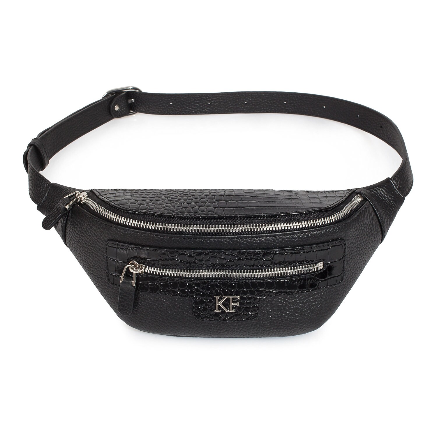 Leather women's Banana bag, Black Leather Banana bag, Women's Bananka bag, Leather belt Bananka bag KF-3758