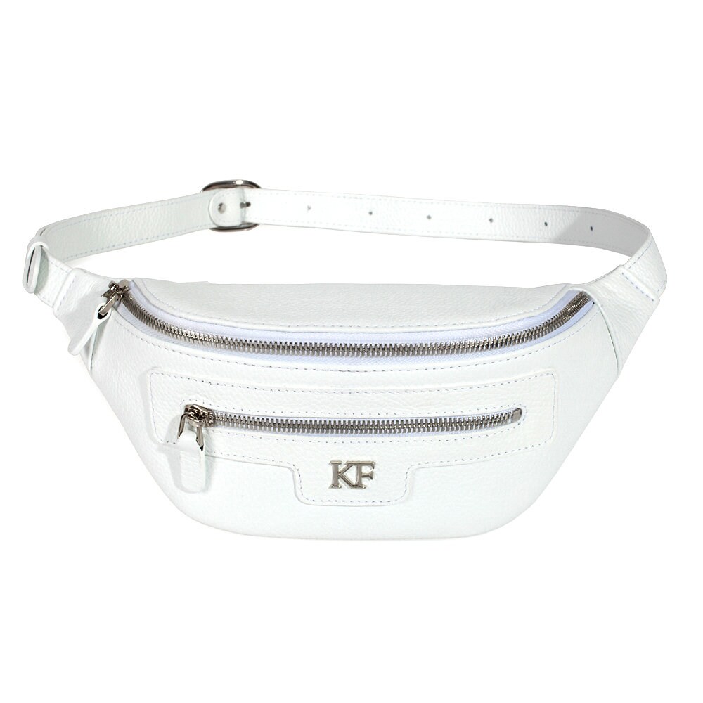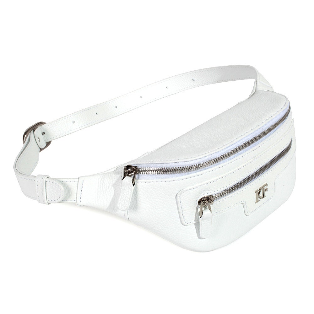Leather women's Banana bag, White Leather Banana bag, Women's Banana bag, Leather belt Bananka bag KF-4202