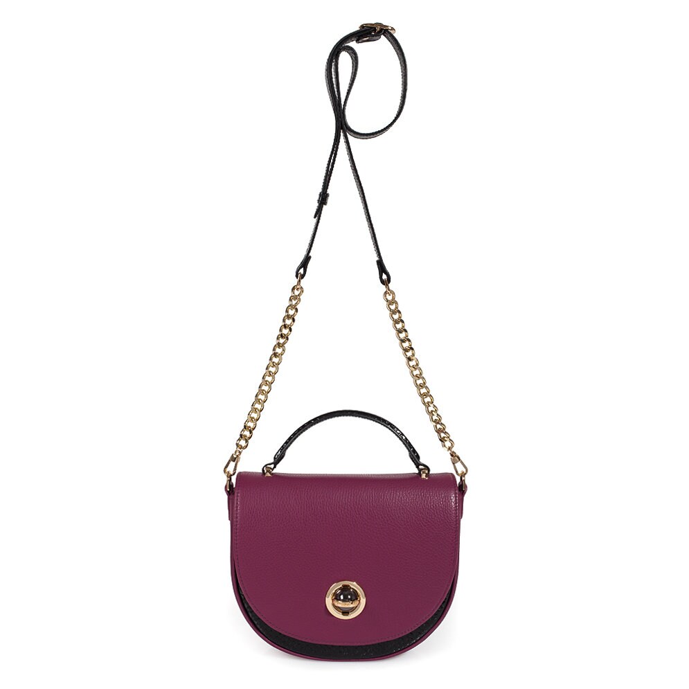 Violet (Orchid) genuine leather woman shoulder bag from ukrainian designer Katerina Fox. Fashionable and elegant modern bag KF for bright girls and women. This bag is able to attract attention and highlight your exquisite taste. Inside the bag is one large compartment and a convenient zippered pocket for small items, closes the bag on the clasp. The bag is comfortable to wear on the shoulder or across the shoulder.