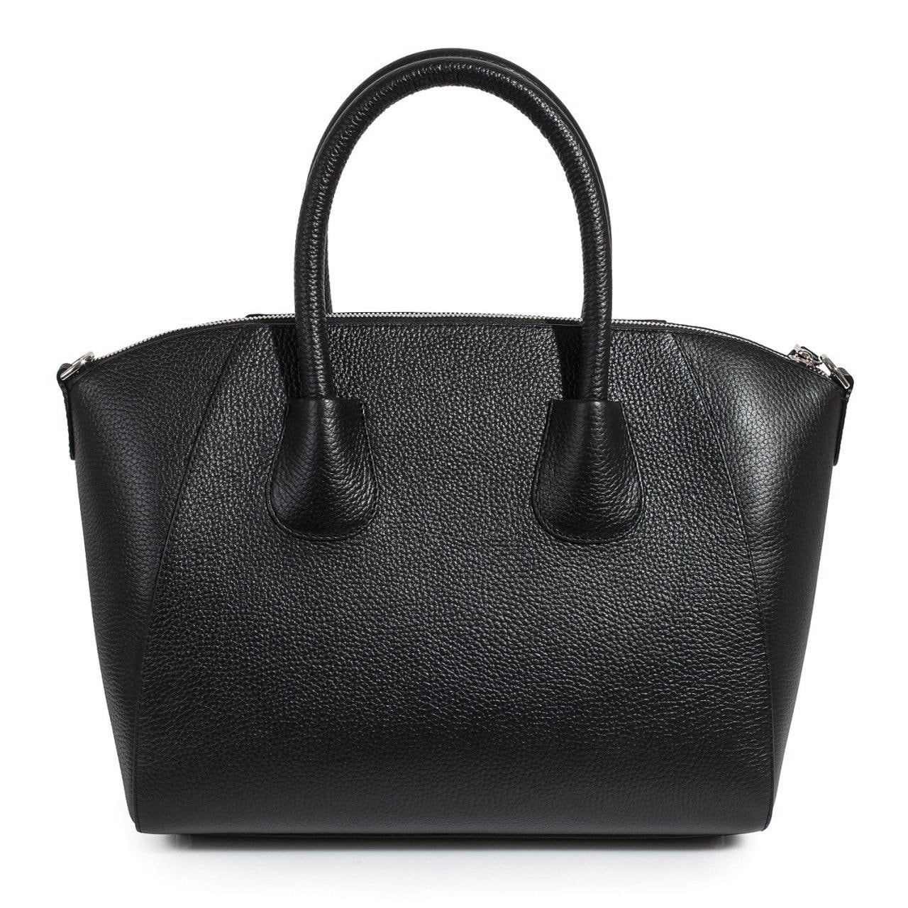 Black genuine leather woman handbag from ukrainian designer Katerina Fox , ideally combines the black crocodile print genuine leather and black leather trim which allows luxurious look and is perfect for any style . Roomy, comfortable bag has sturdy leather handles and includes adjustable long leather handle . All hardware what we use is good quality,reliable and durable. Inside the bag one large compartment , two patch pockets and one zip pocket, bag closes with a zipper . The bottom of the bag is protected by metal legs . This model looks very solid and stylish!
