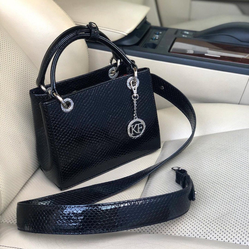 Delivery: In most cases our goods are shipped by FedEx or Ups Express. On rare occasions the goods might be shipped by Ukrposhta. The clients should check in advance an estimate of the amount of customs duty and value added tax.Black genuine leather handbag from ukrainian designer Katerina Fox. This model is designed for women who appreciate the sleek design combined with functionality and comfort. Despite the simplicity, this bag stands out thanks to a triangular insert in black suede leather. High-quality and reliable hardware ensure long service bags. Inside the bag are three spacious compartments, one with zip, two patch pockets and one zippered pocket closes with a zipper. The bottom of the bag protected by metal feet.