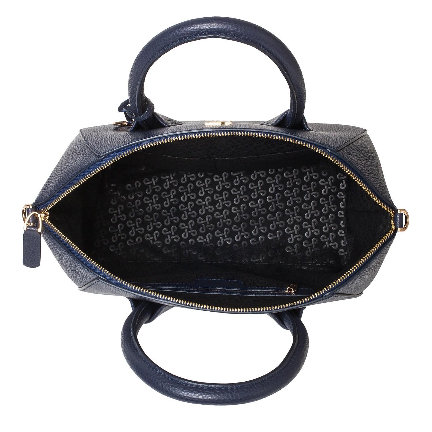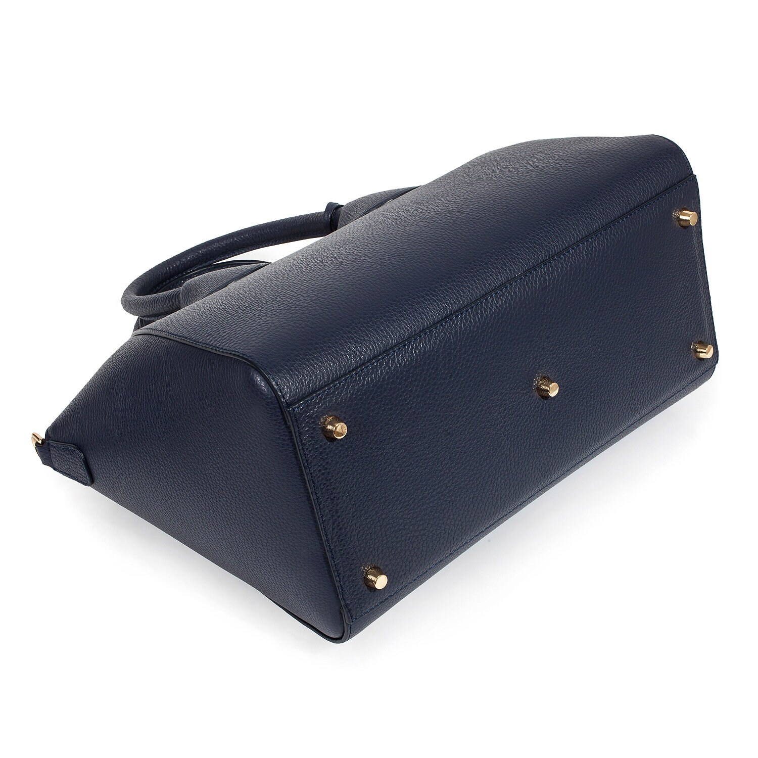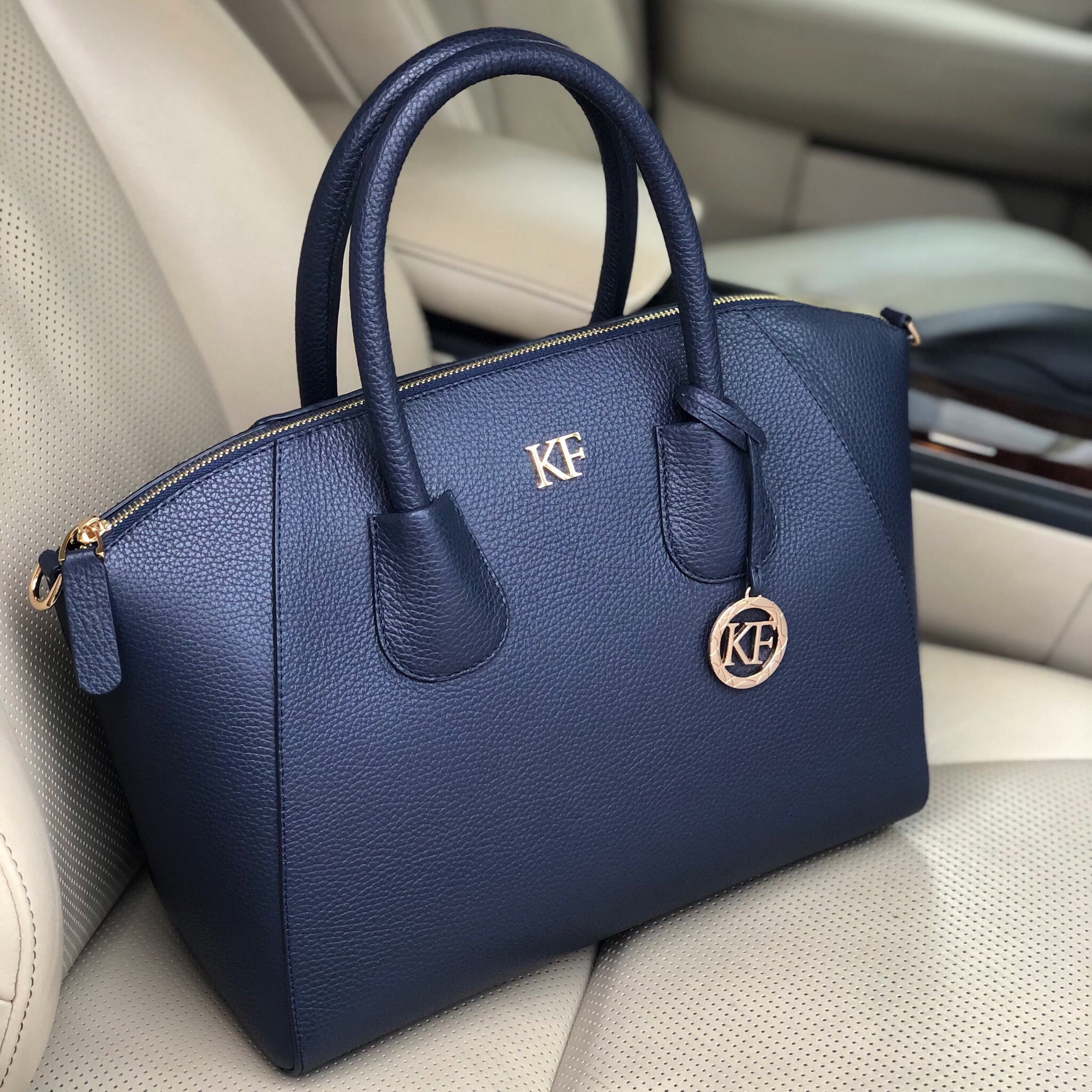 Dark blue genuine leather woman handbag from ukrainian designer Katerina Fox , ideally combines the dark green crocodile print genuine leather and black leather trim which allows luxurious look and is perfect for any style . Roomy, comfortable bag has sturdy leather handles and includes adjustable long leather handle . All hardware what we use is good quality,reliable and durable. Inside the bag one large compartment , two patch pockets and one zip pocket, bag closes with a zipper . The bottom of the bag is protected by metal legs . This model looks very solid and stylish!