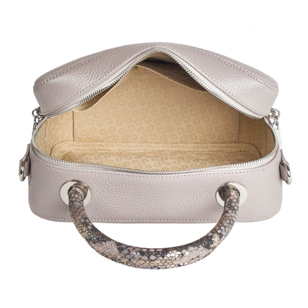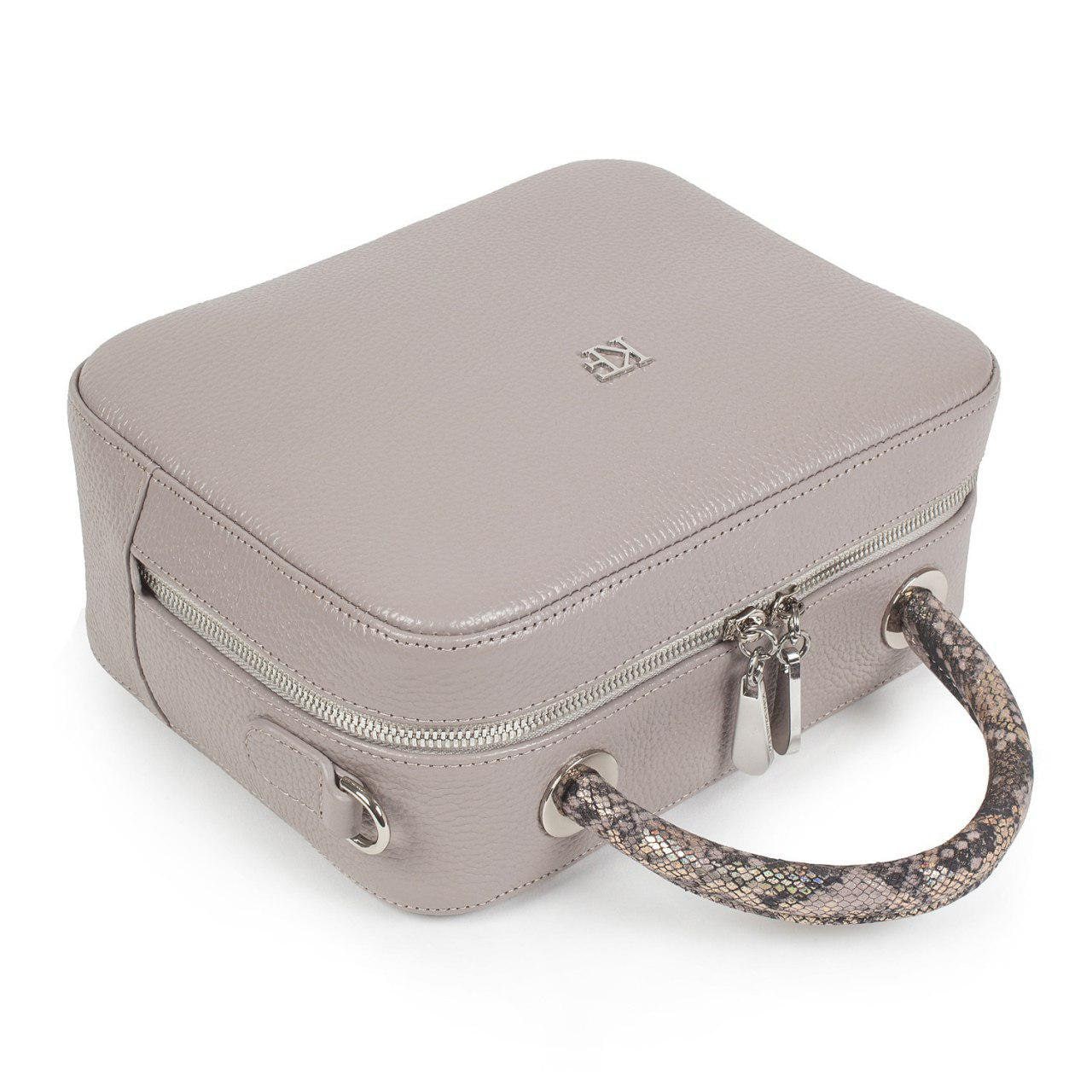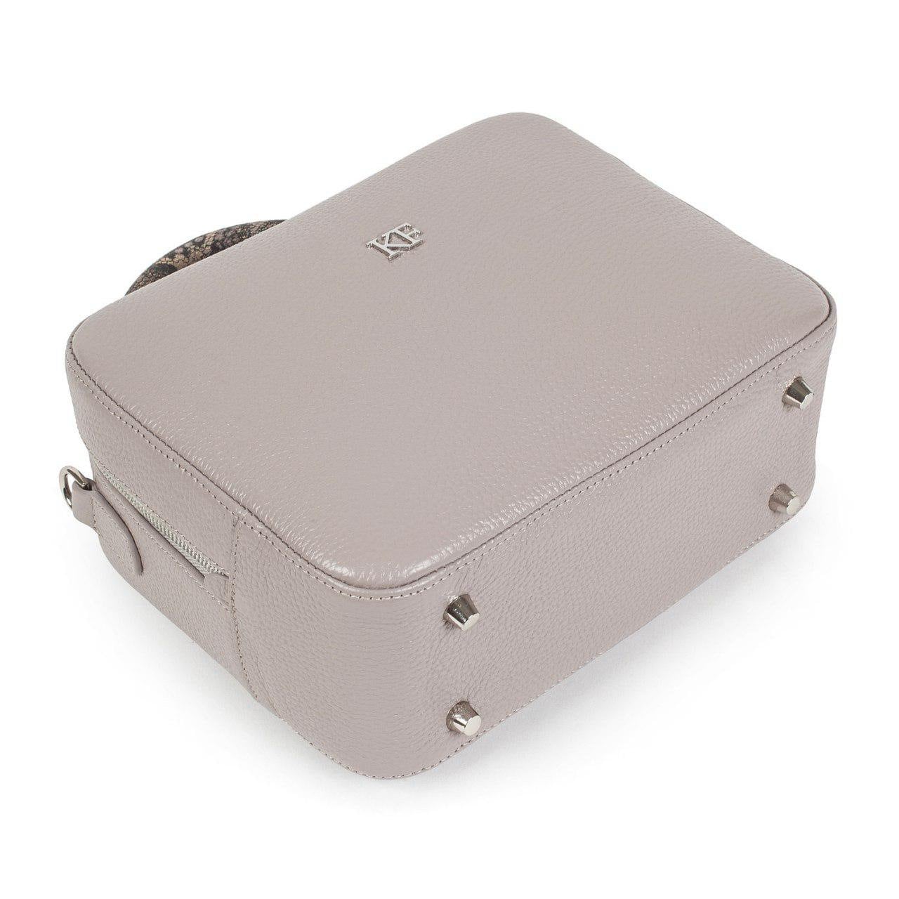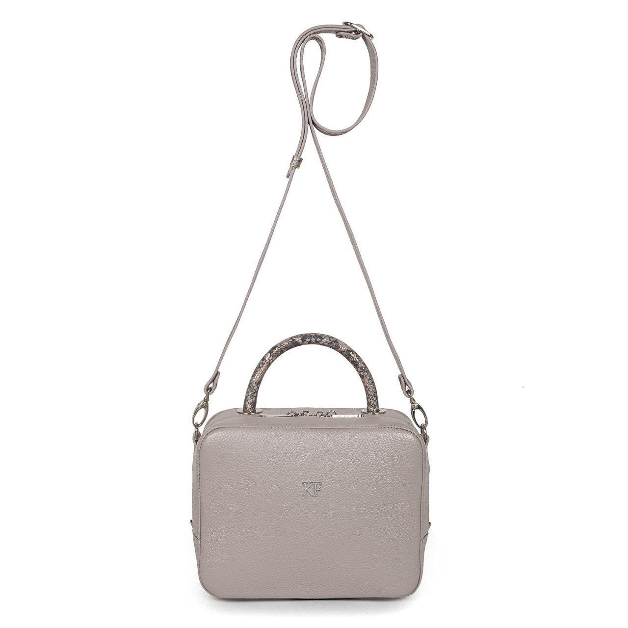 Gray beige genuine leather woman shoulder bag from ukrainian designer Katerina Fox. Fashionable and elegant modern bag KF for bright girls and women. This bag is able to attract attention and highlight your exquisite taste. The internal space of a bag is equipped with one spacious compartment and one zipper pocket. The bag is closed with a zipper. The length of the strap is adjustable. The kit also includes a storage bag.