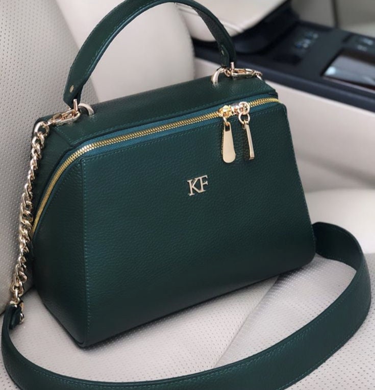 Green genuine leather handbag from ukrainian designer Katerina Fox. This model is designed for women who appreciate the sleek design combined with functionality and comfort. High-quality and reliable hardware ensure long service bags. The internal space of a bag is equipped with one spacious compartment and two patch-pockets and one zipper pocket. The bag is closed with a zipper. The bottom of the bag is protected with metal legs. There is a long handle that allows you to wear the bag on the shoulder. The kit also includes a storage bag.