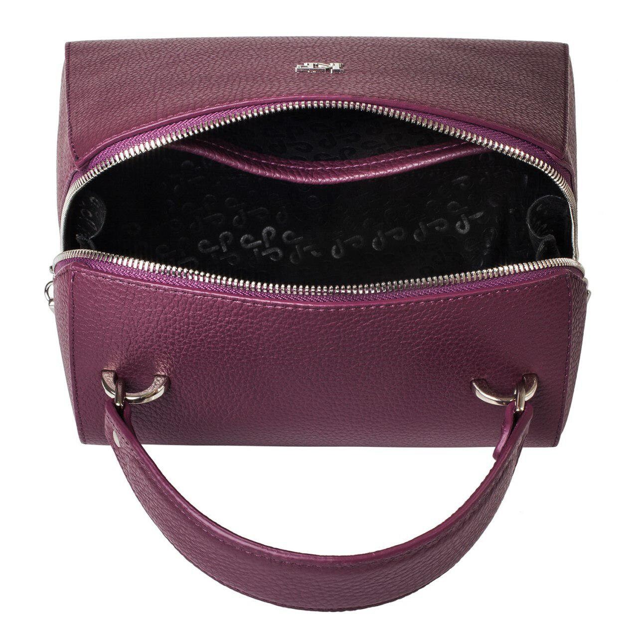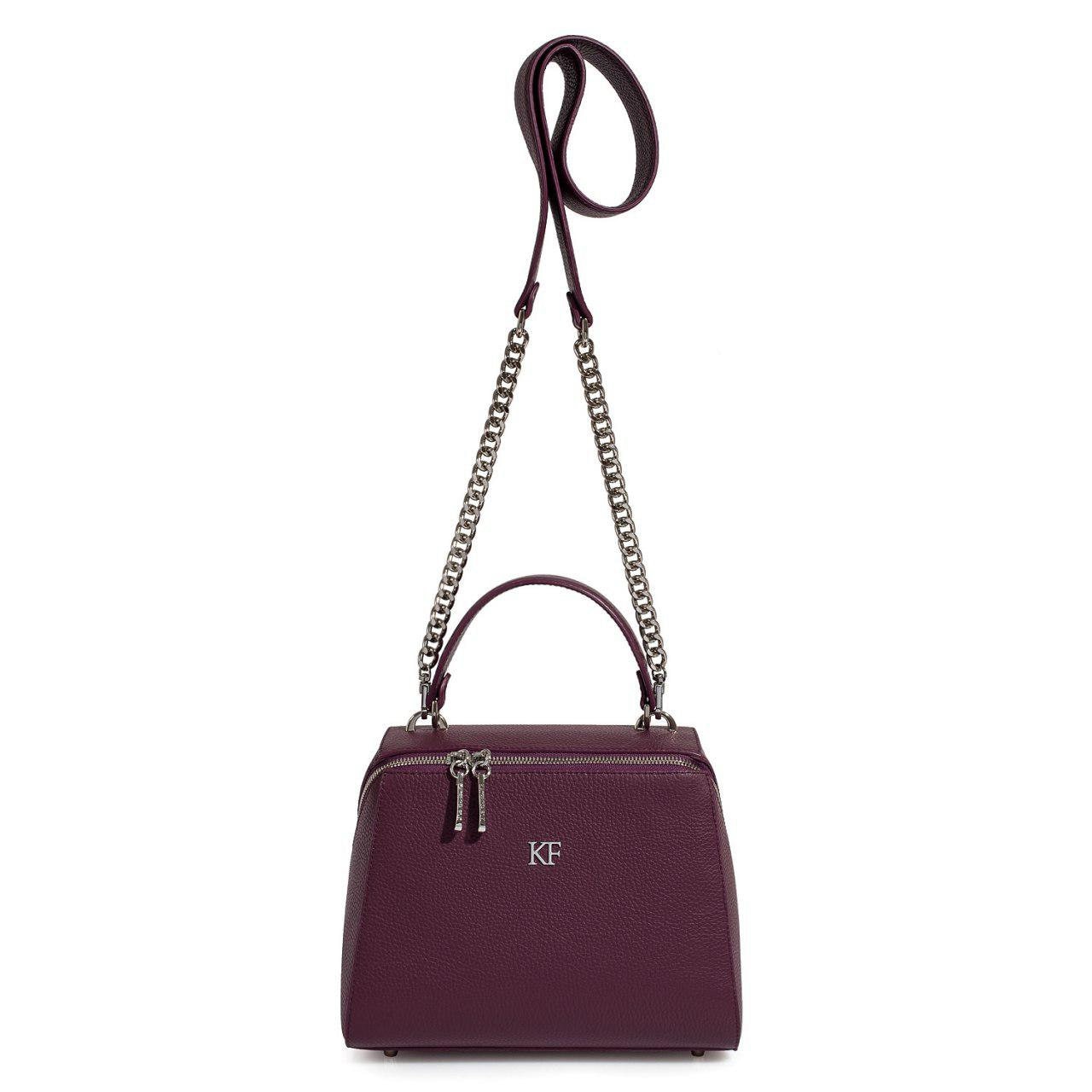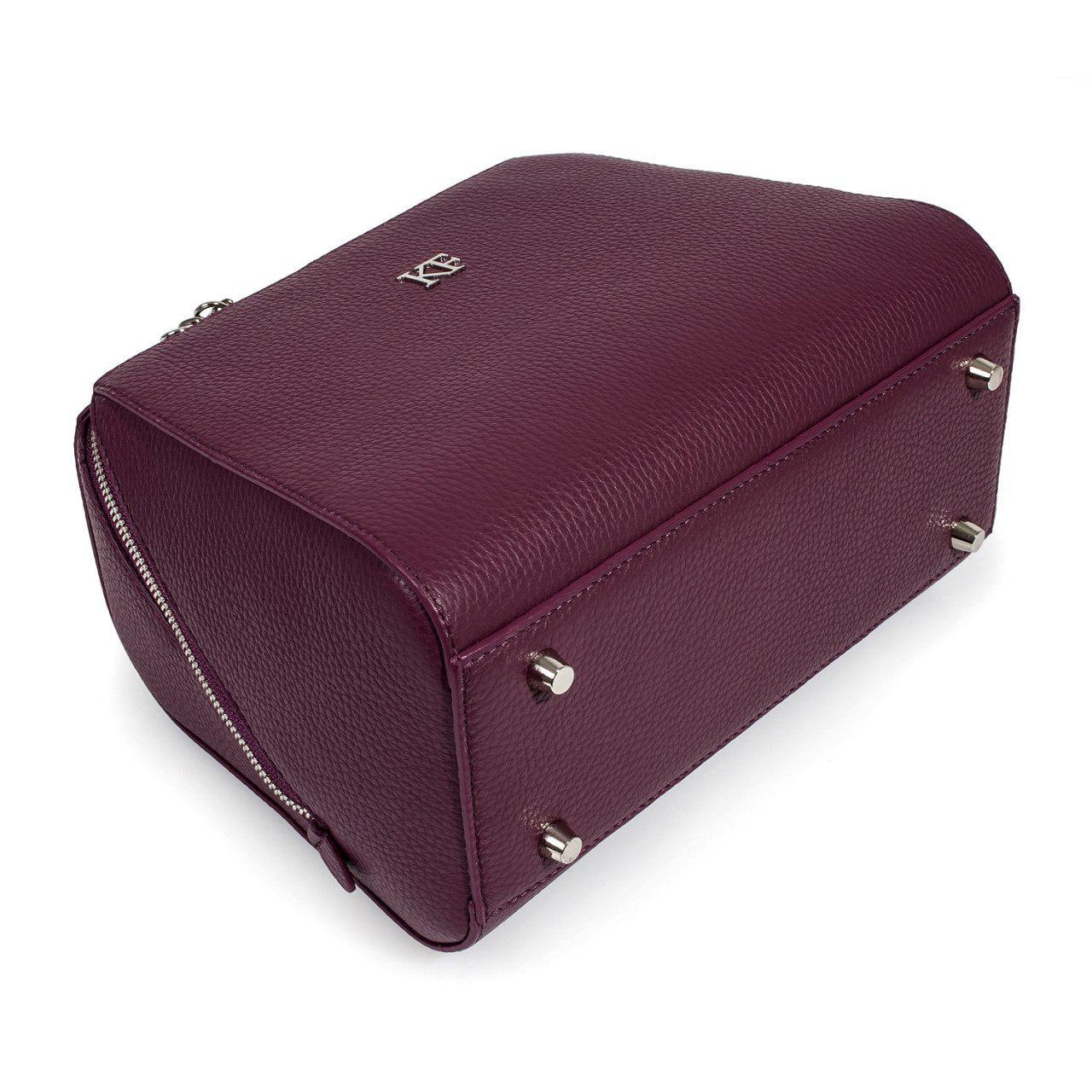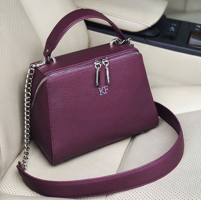 Violet (Blackberry) genuine leather handbag from ukrainian designer Katerina Fox. This model is designed for women who appreciate the sleek design combined with functionality and comfort. High-quality and reliable hardware ensure long service bags. The internal space of a bag is equipped with one spacious compartment and two patch-pockets and one zipper pocket. The bag is closed with a zipper. The bottom of the bag is protected with metal legs. There is a long handle that allows you to wear the bag on the shoulder. The kit also includes a storage bag.