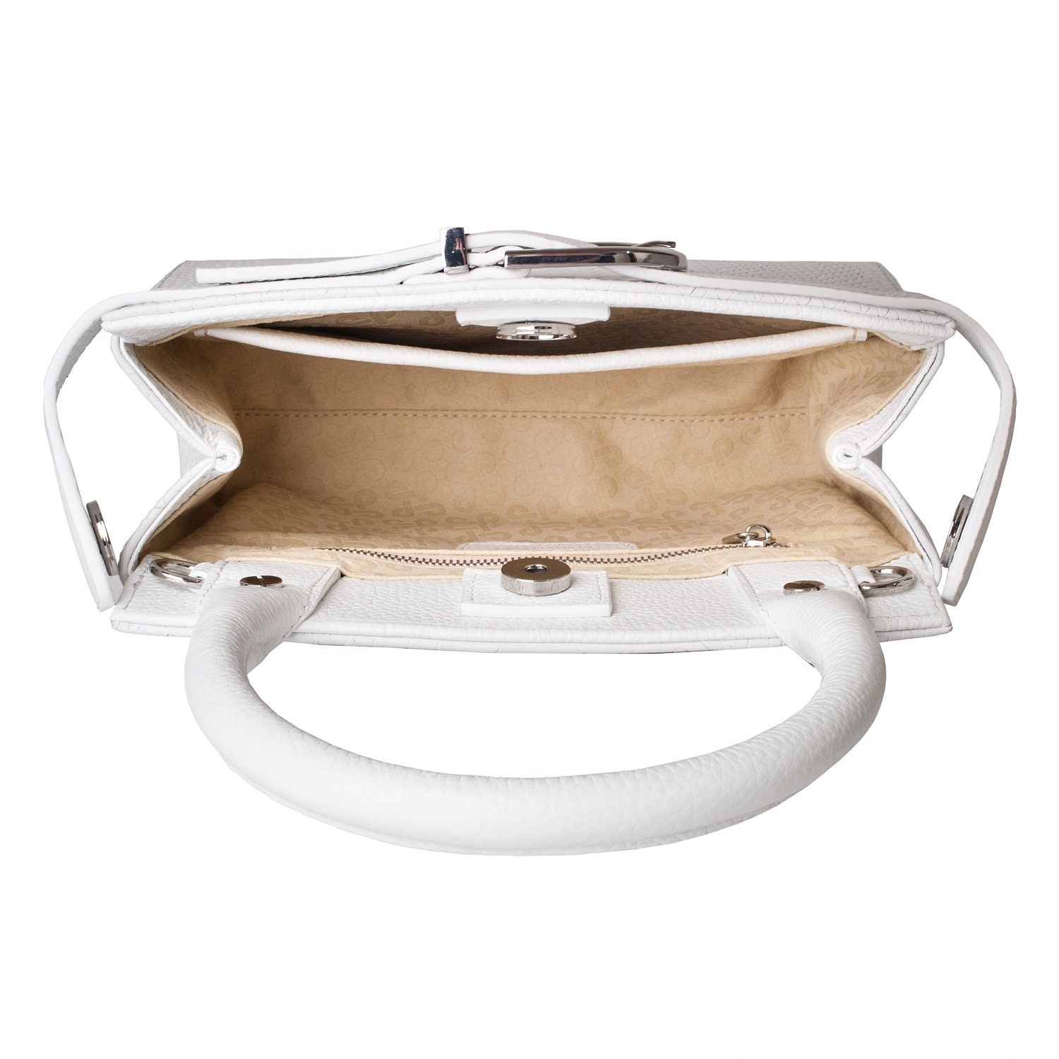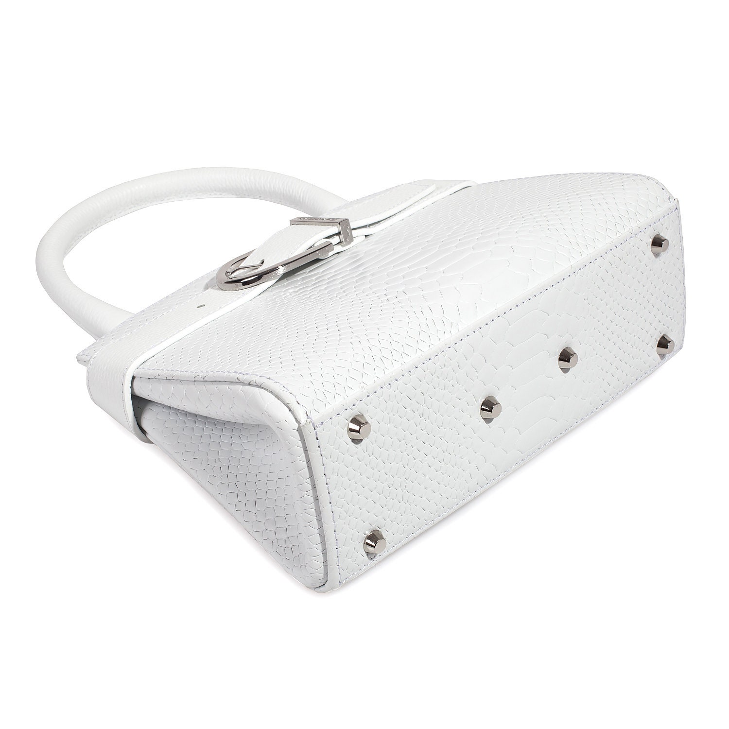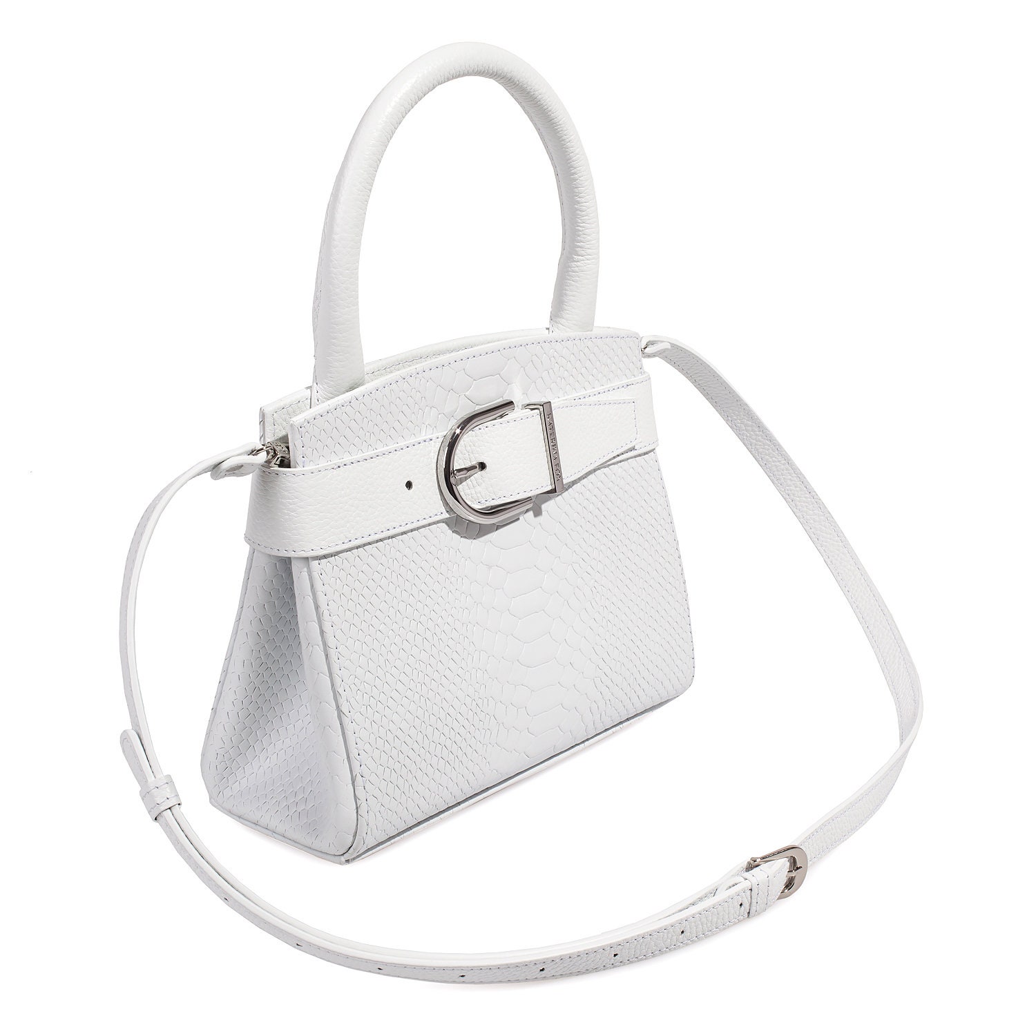 Women's leather bag made of genuine leather, hardware with galvanic coating and microfiber lining. The internal space of a bag is equipped with three compartments, one compartment and two side pockets, one with a zipper. §³loses with 3 magnet buttons. The bottom of the bag is protected with metal legs. There is a long handle that allows you to wear the bag on the shoulder. The kit also includes a storage bag.