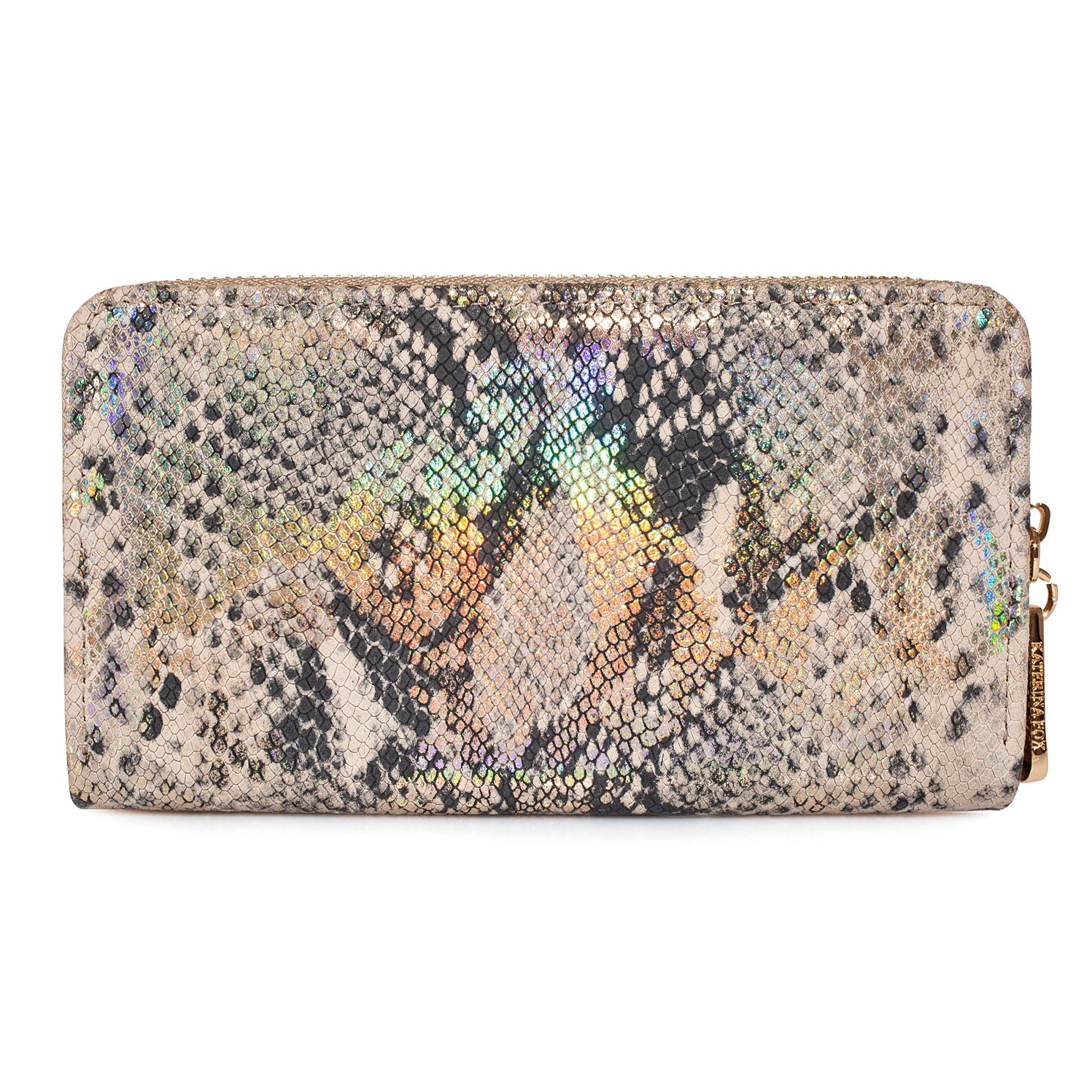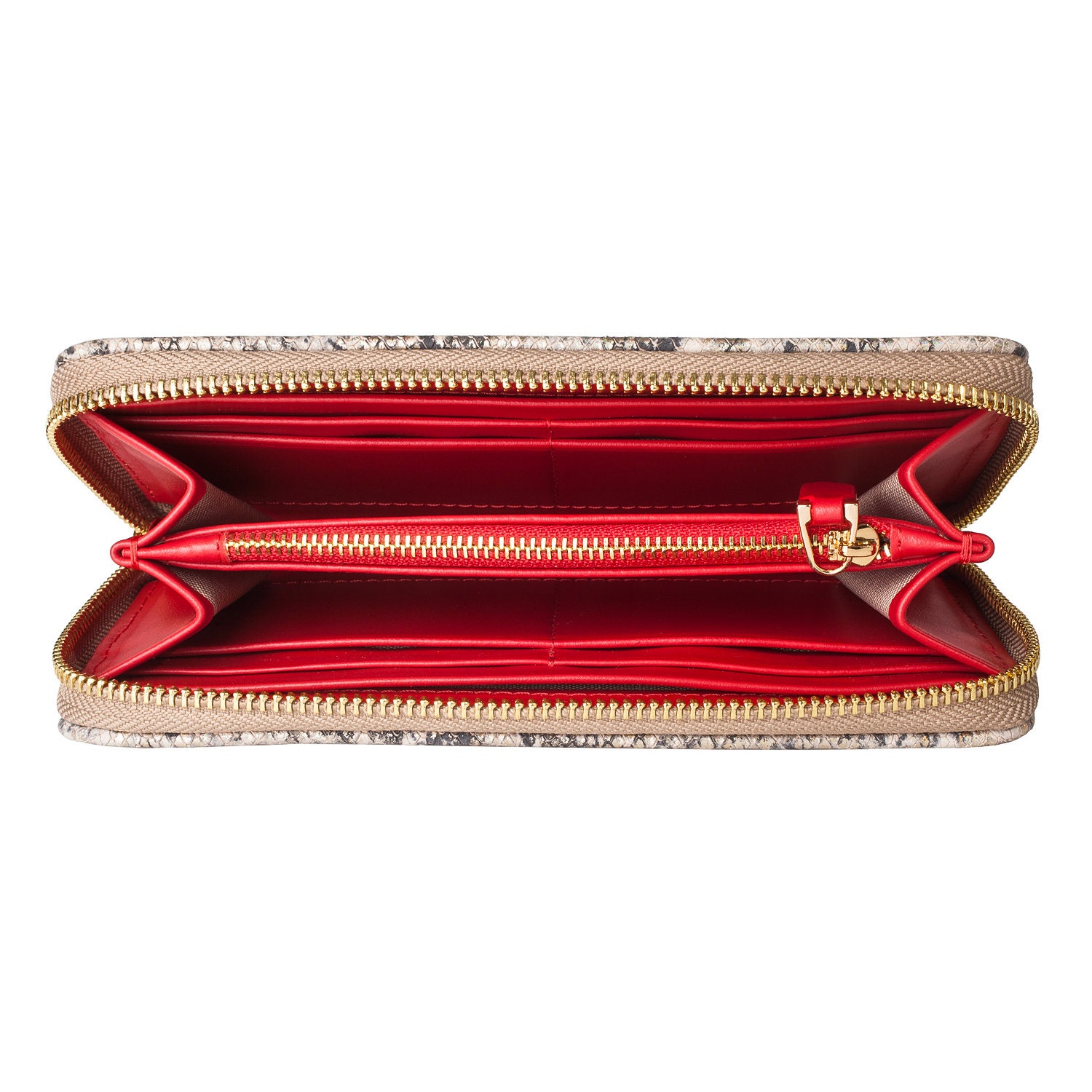Beige genuine leather woman wallet from ukrainian designer Katerina Fox. A stylish accessory – a necessary purchase for many women. Wallet KF like women who value practicality and beauty. Inside two large compartments for notes, separating zipper pocket for coins, nine pockets for business cards and two department, closed wallet on zipper. Wallet has a short handle on a removable wrist.